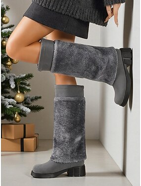 Damen Stiefel Schneestiefel Wildlederschuhe Block Fersenstiefel Täglich Büro & Karriere Einfarbig Mit Fleece Futter Kniehohe Stiefel Schnalle Blockabsatz Runde Zehe Mode Komfort Süß Kunstwildleder