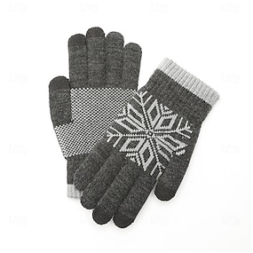 Herren 1 Paar Winterhandschuhe Gestrickte Handschuhe Fingerlose Handschuhe Sport Mode Sport & Outdoor Handschuhe Thermowarm Fleece Farbblock Schneeflocke Herbst Schwarz Marineblau Grau