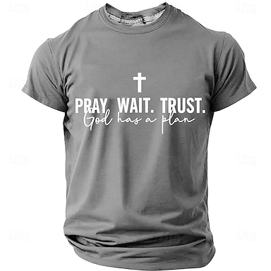 Herren-T-Shirt mit einfarbigem Kreuz- und Bibelmotiv, Kurzarm, 3D-Druck, Rundhalsausschnitt, Vintage-Retro-Stil, für Alltag und Festivals, in Blau, Schwarz und Burgunderrot, Sommer/Frühling, Größen: