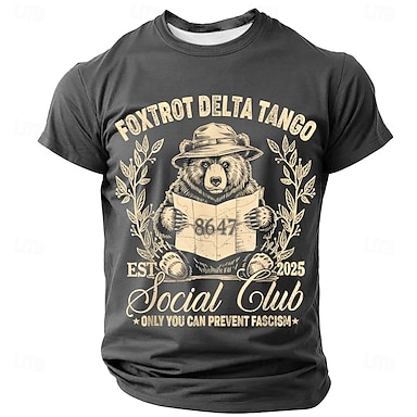 Herren T-Shirt Antifaschismus Bären Grafik Foxtrot Delta Tango Sozialclub Politische Satire Kurzarm