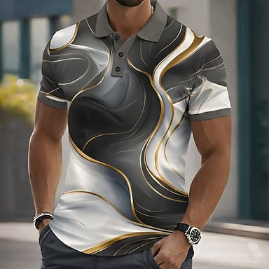 Herren Marmor Poloshirts Kurzarm Polo-Shirts Hemden mit Kragen Lässig Athleisure Knöpfe Sommer Frühling Blau Grün Grau