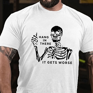 Herren Grafik T-Shirt Skelett 'Halt dich fest es wird schlimmer' Dunkler Humor Kurzarm