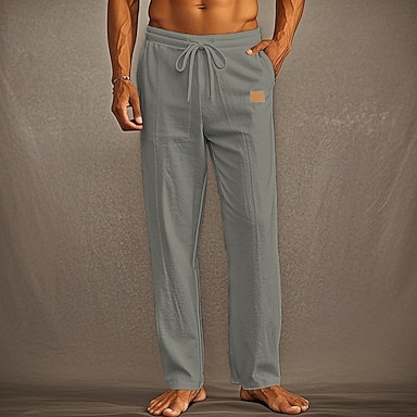Herren Leinenhosen Hose Sommerhose Strandhose Tasche Kordelzug Elastischer Bund Einfach Komfort Atmungsaktiv Urlaub Täglich Ferien Hawaiianisch Boho Schwarz Weiß