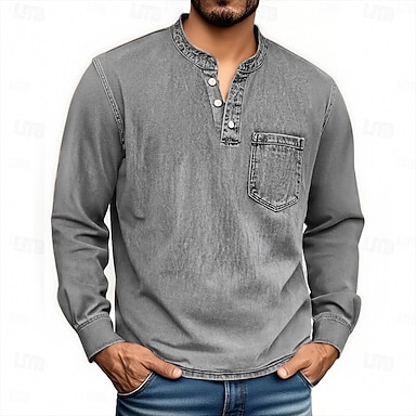 Herren Henley Hemd T-Shirt Langarmshirt Langarm Henley Herbst Winter Retro Mode Designer Nostalgisch Stückgefärbt Verblasst Mode Urlaub Straße Ausgehen Marineblau Schwarz Himmelblau Top T-Shirt für