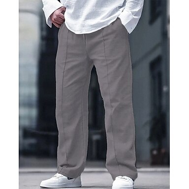Herren Leinenhosen Hose Sommerhose Kordelzug Elastischer Bund Gerader Schnitt Einfach Komfort Atmungsaktiv Volle Länge Lässig Täglich Ferien Mode Klassicher Stil Blau Schwarz Unelastisch