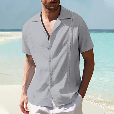 Herren Hemd leinenhemd Baumwoll-Leinenhemd Guayabera Hemd Sommerhemd Strandhemd Einfach Urlaub Lässig Schwarz Weiß Marineblau Blau Kurzarm Camp-Kragen Sommer Bekleidung