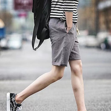 Herren Leinenshorts Kurze Hosen Sommer-Shorts Strandshorts Kurze Hosen Tasche Kordelzug Elastische Taille Glatt Komfort Atmungsaktiv Kurz Festtage Urlaub Strand Hawaiianisch Boho Schwarz Weiß