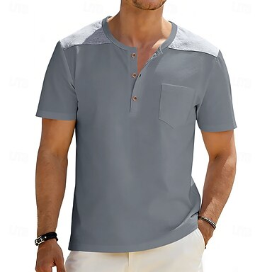 Herren T Shirt Henley Hemd Kurzarmshirt Kurzarm Henley Sommer Frühling Farbblock Vintage Streetwear Stilvoll Farbblock Lässig Täglich Outdoor Blau Weiß Schwarz Top T-Shirt für Herren