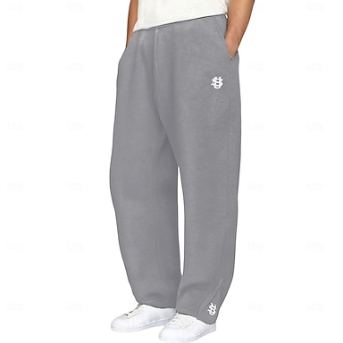 Herren Jogginghose Jogginghose mit weitem Bein Hose Jogginghose mit offenem Saum Kordelzug Bestickt Elastischer Bund Einfach Atmungsaktiv Volle Länge Sport im Freien Lässig Täglich Mode Klassicher