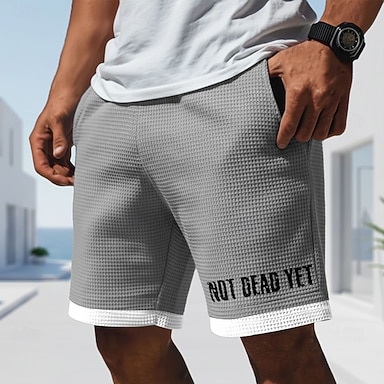 Herren Buchstabendruck FREEDOM Farbblockierung Waffel-Shorts Freizeitshorts Shorts mit Struktur Mittlere Taille Modisch lässig Täglich Urlaub Elastischer Kordelzug in der Taille Shorts mit Taschen