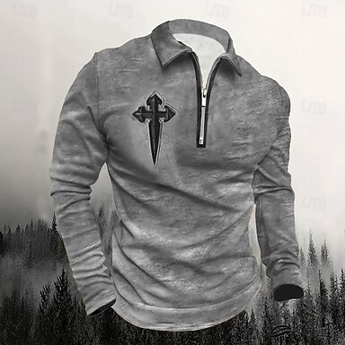 Männlich Grafik Kreuz Polo Langarm Umlegekragen Vintage-Stil Lässig Sport & Outdoor Athleisure Alltagstauglich Reißverschluss 3D-Druck Frühling Herbst Winter Dunkelgrau Blau Braun