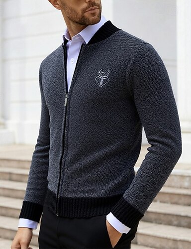 Herren Kleid Pullover Strickjacke Pullover Jacke Gerippt Stricken Glatt Strickware Elegant Arbeit Alltagskleidung Bekleidung Frühling Herbst Schwarz Braun M L XL