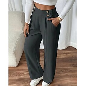 Damen Weites Bein Anzughose Mode Streetwear Volle Länge Natürliche Taille Einfach Tasche Elastischer Bund Bequem Formell Büro Straße Aprikose Grau Schwarz Hellgrün Herbst Normale Passform