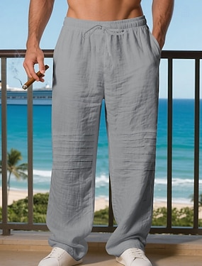 Herren Leinenhosen Sommerhose Strandhose Tasche Falten Einfach Komfort Atmungsaktiv Volle Länge Täglich Outdoor Strand Urlaub Mode Schwarz Weiß Unelastisch