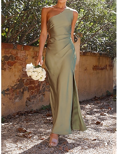 Damen Maxikleid Satinkleid Partykleid Cocktailkleid Elegant Mode Modern Abendgesellschaft Party Hochzeit Normale Passform Einfach Ärmellos Ein-Schulter Blau Schwarz Rosa Grün Sommer Frühling