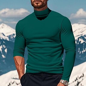 Herren T-Shirt Langarmshirt Falscher Rollkragen Langarm Rollkragen Stapelhals Winter Frühling & Herbst Einfarbig Täglich Lässig Streetstyle Stehkragen Rein Formell Outdoor Straße Schwarz Weiß Gelb