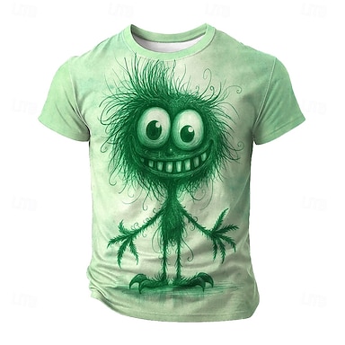 Herren Charakter Lustig T Shirt Kurzarm T-Shirt 3D-Druck Rundhalsausschnitt Hemd Mode Übertrieben Täglich Party Straße Lässig Blau Grün Khaki Sommer Frühling Ganzjahres Bekleidung S M L XL XXL XXXL