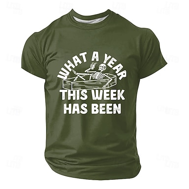 Herren-T-Shirt „Was für ein Jahr diese Woche war“ – Skelett-Sarg, lustiger, sarkastischer, schwarzer Humor, Meme-Motiv, normale Passform, Rundhalsausschnitt, lässig, für Arbeit und Stress,