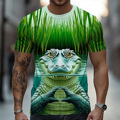 Herren Krokodil Lustig T Shirt Kurzarm T-Shirt 3D-Druck Rundhalsausschnitt Hemd Übertrieben Designer Party Straße Lässig Grün 2# Hellgrün Minzgrün Sommer Frühling Ganzjahres Bekleidung S M L XL XXL