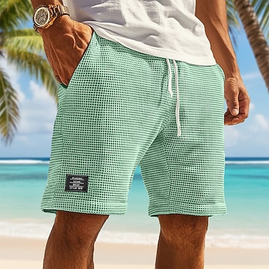 Herren Waffel-Shorts Sommershorts Strandshorts Freizeitshorts Kordelzug Elastischer Bund Einfarbig Komfort Knielang Täglich Outdoor Streetwear Urlaub Mode Blau Weiß Mikroelastisch