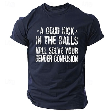 Herren Kurzarm Grafik T-Shirt 'Ein guter Tritt in die Eier wird deine Geschlechterverwirrung lösen' Druck Tee