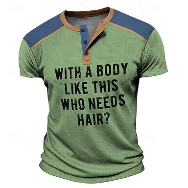 Herren Grafik Stammes Henley Hemd Kurzarm 3D-Druck Mode Designer Basic Täglich Sommer Hellblau Grün Khaki Stehkragen Henley T-Shirt