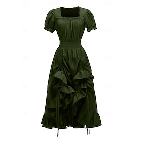 Elegant Mittelalterlich Renaissance Cocktailkleid Wikinger Elfen Einfarbig Kostüm Damen Keltisch Seeräuber Fantasie Halloween Karneval Maskerade Karneval Halloween Maskerade Erwachsene Kleid