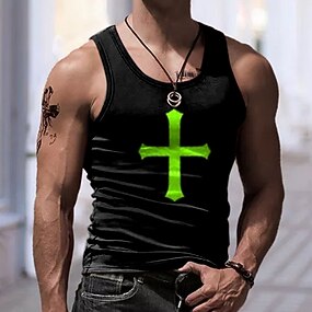 Herren Grafik Gothic-Horror Kreuz Tank Top Weste Ärmelloses T-Shirt für Herren Ärmellos T-Shirt 3D-Druck Rundhalsausschnitt Hemd Sport Mode Subkultur Lässig Fitnessstudio Sport im Freien Blau Rot