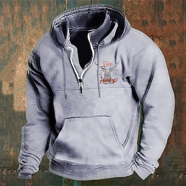Herren Kapuzensweatshirt Wein Marineblau Grün Khaki Hell Gray Mit Kapuze Jeder Fronttasche Viertel Postleitzahl Täglich Ferien Ausgehen Polyester Streetwear Lässig Bayerisch Herbst Winter Bekleidung