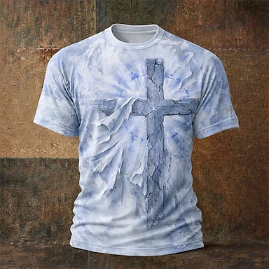 Unisex-Bibel 3D-Kreuz Christliches T-Shirt Kurzarm T-Shirt 3D-Druck Rundhalshemd Religiös Patriotisch Casual Daily Party Hellblau Rosa Khaki Sommer Frühling Kleidung Mode