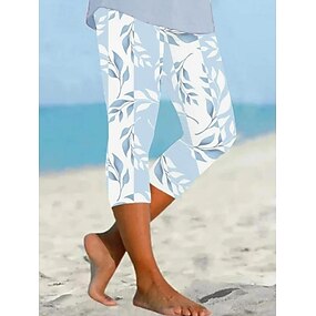 Damen Leggings Capri Hosen hohe Elastizität Urlaub Mode Hawaiianische Knielänge mittlere Taille floraler Grafikdruck atmungsaktiv weich Urlaub lässig täglich hellblau Sommer Frühling reguläre Passform