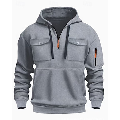 Herren Kapuzensweatshirt Reißverschluss Kapuzensweatshirt Viertelreißverschluss Kapuzensweatshirt Schwarz Armeegrün Marineblau Khaki Hellgrau Mit Kapuze Einfach Tasche Täglich Sport & Outdoor Ferien