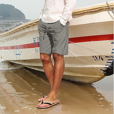 Herren Shorts Leinenshorts Sommershorts Bermudashorts Kordelzug Tasche Einfach Komfort Weich Knielang Täglich Strand Streetwear Lässig / Sportlich Schwarz Weiß Mikroelastisch