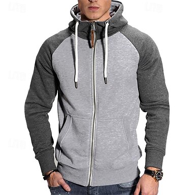 Herren Vollreißverschluss-Kapuzensweatshirt Reißverschluss Kapuzensweatshirt Schwarz Königsblau Hellgrau Dunkelgray Mit Kapuze Farbblock Einfach Reißverschluss Patchwork Sport & Outdoor Täglich Ferien
