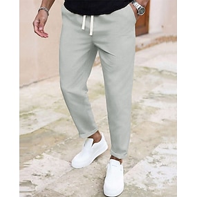 Herren Leinenhosen Hose Sommerhose Strandhose Kordelzug Tasche Elastischer Bund Einfach Komfort Atmungsaktiv Urlaub Täglich Ferien Hawaiianisch Boho Melonen-Rot Hellkaki