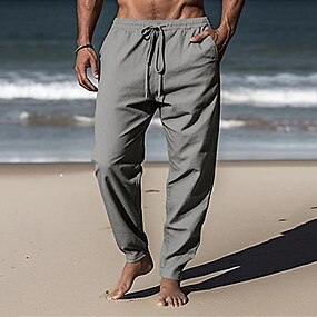 Herren Leinenhosen Hose Sommerhose Strandhose Kordelzug Elastischer Bund Einfach Komfort Weich Volle Länge Täglich Strand Mode Einfach Schwarz Weiß