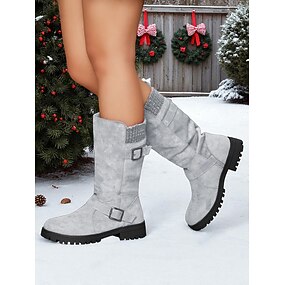 Rote Damenstiefel aus Wildlederimitat mit halbhoher Wade, verstellbaren Schnallen und rutschfester Sohle, lässige, bequeme Strickstiefel für Weihnachten &Alltagskleidung