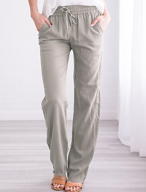 Damen Normal Baumwoll Mischung Chinos Sommerhose Hosen Hose Klassisch Lässig Chino Volle Länge Mittlere Taille Einfach Kordelzug Patchwork Tasche Leicht Außenbereich Atmungsaktiv Unelastisch Täglich