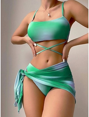 Damen Badeanzug Dreiteilig Bademode Gerafft Rückenfrei Urlaub Strandbekleidung Batik U-Ausschnitt Ärmellos Badeanzüge