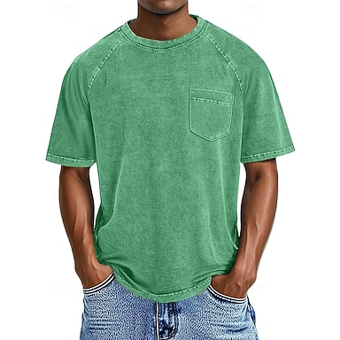 Herren Baumwoll-T-Shirt Gewaschenes Hemd T-Shirt Kurzarm Rundhalsausschnitt Sommer Frühling Ganzjahres Einfarbig Einfach Retro Vintage Betrübt Tasche Stückgefärbt Gewaschen Lässig Urlaub Straße