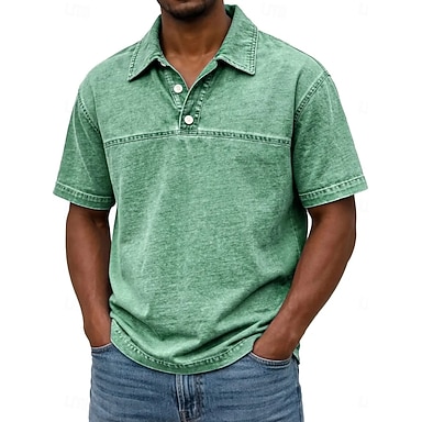 Herren Poloshirts Hemd aus 100 % Baumwolle in Säurewaschung Lässig Ferien Revers Kurzarm Mode Basic Einfarbig Einfach Jahrgang Betrübt Sommer Frühling Ganzjahres Normale Passform Hellgrün Khaki Grau