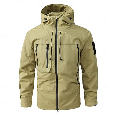 Herren Sport Jacke Regenmantel Wanderjacke Windjacke Outdoor Campen und Wandern Wasserdicht Windjacke Reißverschluss Mehrere Taschen Herbst Winter Ganzjahres Einfarbig Mode Streetwear Mit Kapuze Kurz
