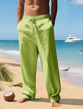 Herren Leinenhosen Hose Sommerhose Baggy-Hosen Kordelzug Elastischer Bund Gerader Schnitt Einfach Komfort Atmungsaktiv Volle Länge Outdoor Lässig Täglich Mode Klassicher Stil Denim Blue Hellgrün