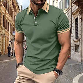 Herren Poloshirts Sport-Poloshirts Lässig Sport Revers Kurzarm Mode Basic Einfach Farbblock Jahrgang Sommer Frühling Frühling & Sommer Normale Passform Hellgrün Grau Poloshirts