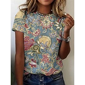 Damen T Shirt Druck Blumen Grafik Rose Elegant Vintage Mode Kurzarm Rundhals Normale Oberteile Täglich Ausgehen Wochenende Blau Weiß Hellgrün Staubiges Blau Braun Sommer