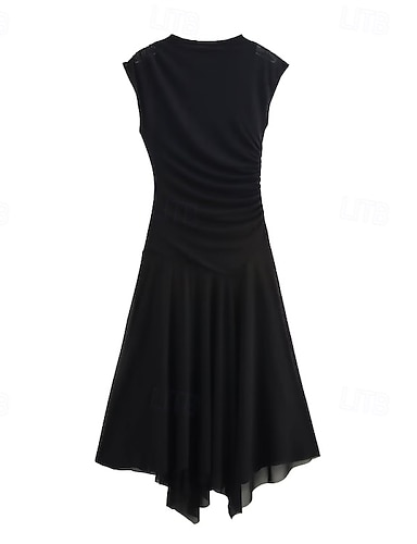 Damen Midikleid Etui-Kleid Chiffon Gerafftes Kleid Mode Modern Outdoor Ferien Ausgehen Normale Passform Einfach Ärmellos Rundhalsausschnitt Schwarz Rosa Braun Frühling Herbst