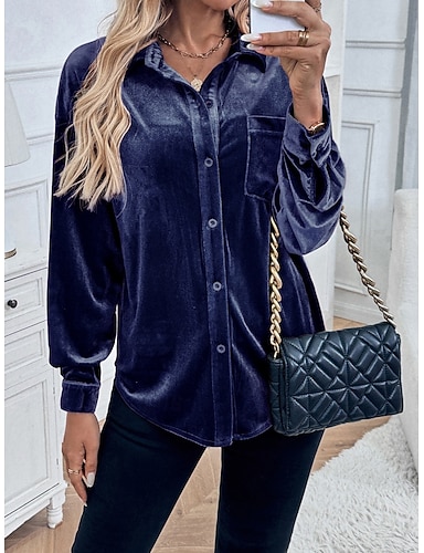 Damen Samt Elegant Bluse Tasche Knöpfe Einfarbig Einfach Elegant Stilvoll Modern Langarm Hemdkragen Normale Oberteile Täglich Ferien Ausgehen Rote Königsblau Braun Grün Herbst Winter