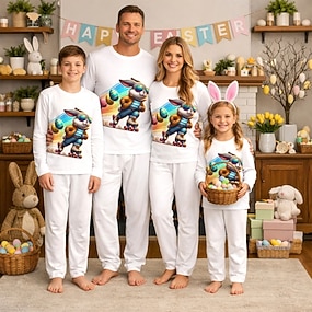 Familie Ostern Schlafanzug Grafik Hase Lässig Druck Weiß Langarm Urlaub Passende Outfits