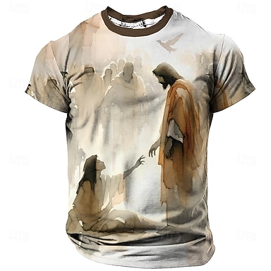 Herren Bibel Glauben Christliches T-Shirt Kurzarm T-Shirt 3D-Druck Rundhals Shirt Retro Vintage Casual Street Style Sport Außen Urlaub Beige Frühling Sommer Kleidung Apparel