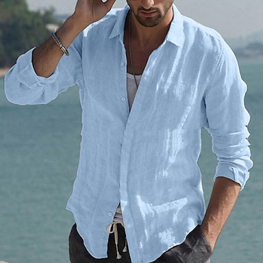 Herren Hemd Leinenhemd Sommerhemd Strandbekleidung Knopfhemd Einfarbig Urlaub Kreuzfahrt Schwarz Weiß Rosa Marineblau Langarm Kragen Frühling & Sommer Bekleidung Button-Down